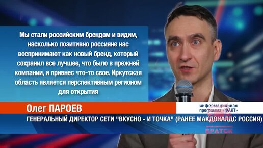 В Иркутской области планируют открыть рестораны сети «Вкусно — и точка»