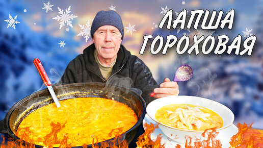 СУП ГОРОХОВЫЙ с ДОМАШНЕЙ ЛАПШОЙ в КАЗАНЕ на КОСТРЕ. РЕЦЕПТ НАШИХ БАБУШЕК.