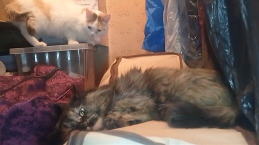 Кошки делят место.