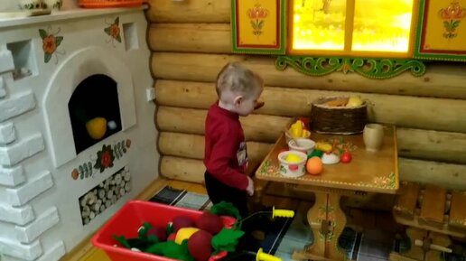 Мы в избе) Ребенок готовит обед.