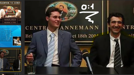 Владимир Крамник играет черными против Петера Леко русскую партию в Бриссаго, 2004, жертвует ферзя и переходит в выигрышный эндшпиль