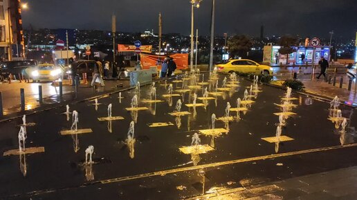 Красивый фонтан в районе Бейоглу в Стамбуле - недалеко от Галатской башни - эстетика воды, света и ветра