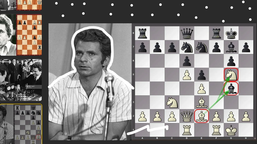 Борис Спасский идеально жертвует качество Андреасу Остлю и забирает победу на 27 ходу "индийской атаки" в Бундеслиге, 1990 - покажу мат, 1-0