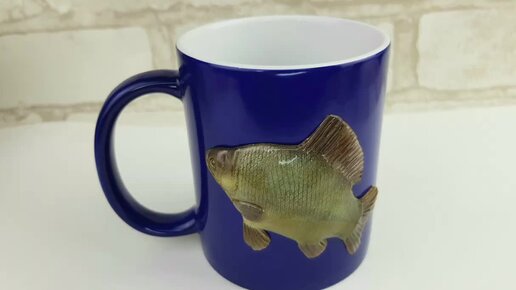 Чашка для рыбака Карась. Подарок рыбаку, папе, сыну, деду, куму другу - кружка хамелеон с тематическим декором из полимерной глины AnneAlArt