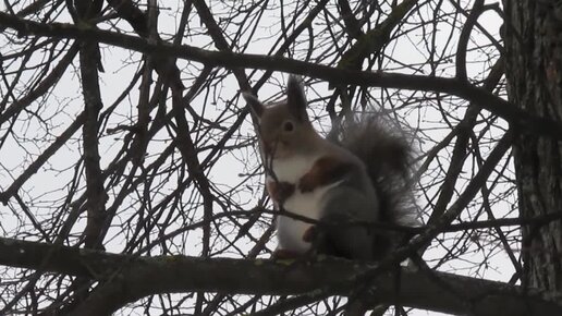 Белка топает и цокает на нас - мы ей ничего не принесли