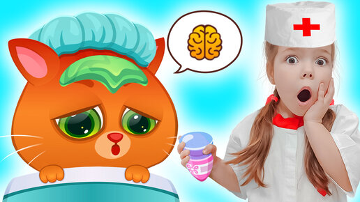 Мультик для детей, как Настя, играет в доктора и лечит котика Бубу | У Bubbu болит голова и мозг