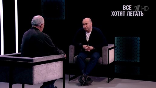 Сергей Бурунов рассказывает Леониду Якубовичу про свой первый самостоятельный полет: «Мне дали пинка под зад, а потом качали»
