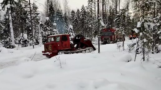 ТТ-4 Сила и мощь из СССР вытаскивает лесовоз 40 тонн