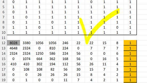 ЕГЭ, информатика, 18 задача в Excel. Разбираем со скоростью ветра задачу Д. Муффазалова № 2156 с сайта kompege про количество путей 0-1