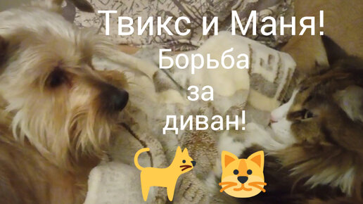 Наши любимые животные/Собака Твиксик и кошка Маня/Борьба за диван/