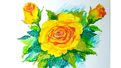 🌹🌼🌹Как нарисовать ярко-желтую розу масляной пастелью.🌹🌼🌹
