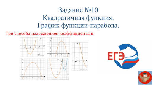 Три способа нахождения коэффициента а в уравнении квадратичной функции. Работа с графиками функций. Задание № 10. ЕГЭ математика профиль.
