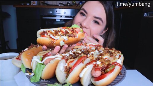 МУКБАНГ ответ на хейт и о российском мукбанге хот-доги с горчичкой Russian mukbang, eating hot dogs