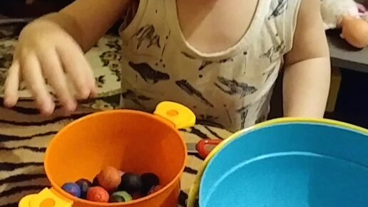 Развивающие игры с детьми полутора лет. Переложи шарики из миски в миску.