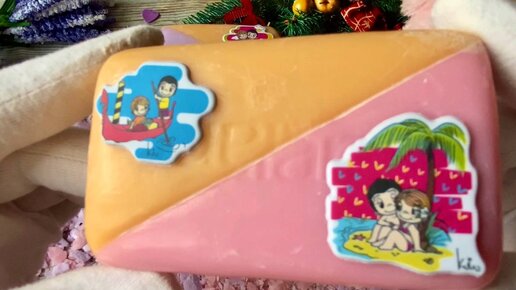 AsmrSoap. Вторая персиково-розовая прилипушка из Dalan. Тугая резка. Сет ко Дню влюбленных ❤️💜💛
