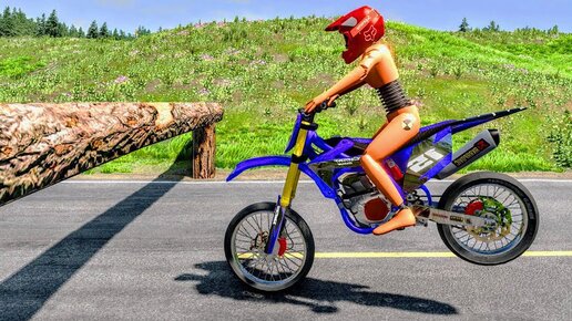 МОТОЦИКЛЫ vs БРЕВНО на БОЛЬШОЙ СКОРОСТИ в BEAM NG DRIVE