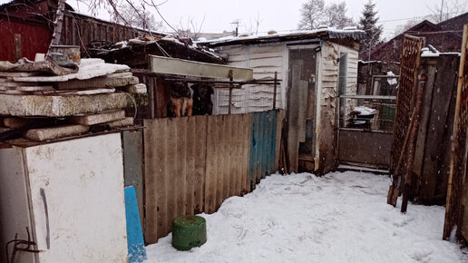 Небольшой дворик, и когда заходишь в "Капельку добра", первыми нас встречают бессменные сторожа Филькины