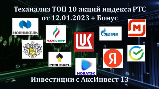 Теханализ TOП 10 акций индекса РТС (голубые фишки) от 12.02.2023 + Бонус