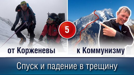 Спуск с Пика Корженевской и падение в трещину.