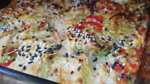 Если есть лаваш и овощи, то готовлю очень вкусную и ароматную запеканку. Так вкусно, что съедается все за раз.