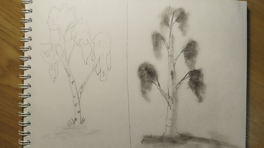 Как легко нарисовать берёзу простым карандашом поэтапно