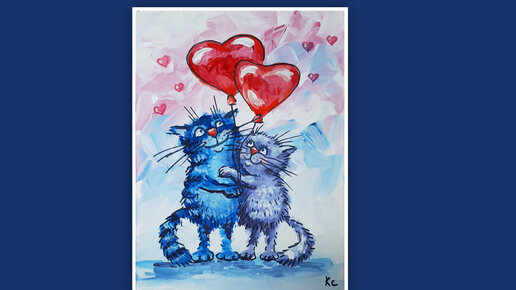 Берем щетинную кисть и рисуем открытку на 14 февраля. Влюбленные коты гуашью. Рисуем влюбленных. Как просто нарисовать кота.