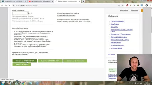 Как заработать на Advego Мой вывод 5$ Адвего работа, отзывы