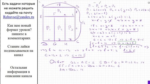Математика Прямоугольник ABCD разделили на четыре меньших прямоугольника с одинаковыми периметрами (см. рисунок). Известно, что АВ = 18 см