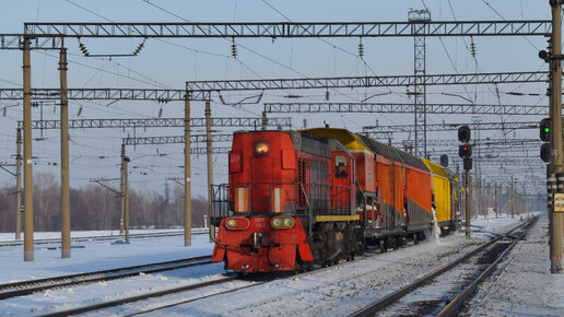 Тепловоз ТЭМ2-7352 и СМ2М-1190. Снегоуборочный поезд в работе.