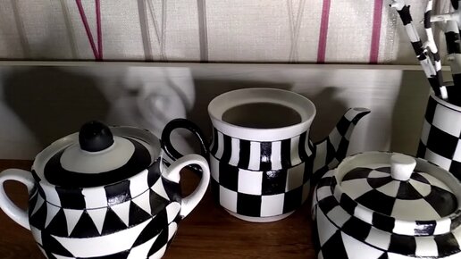 Из старой посуды в уникальный предмет интерьера. Шахматная посуда.