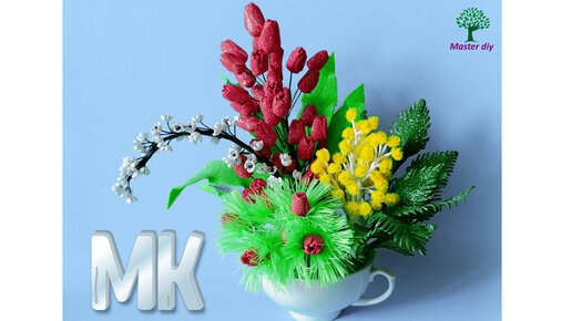 Глоток весны заказывали Красивые подарки Цветы из фоамирана Необычная композиция в кружке\Master diy
