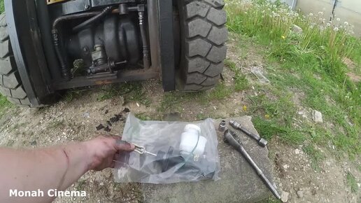 Вилочный погрузчик Komatsu FG20C-12. Ремонт, травма, расколол ноготь в доль.Пошла кровь, но ремонт не остановили и поставили технику на ход
