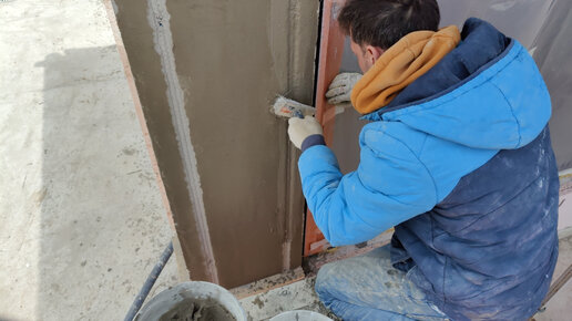 Технология оштукатуривания фасадов газобетонного дома, удаление штукатурных маячков, обработка штроб адгезионным обрызгом перед заполнением