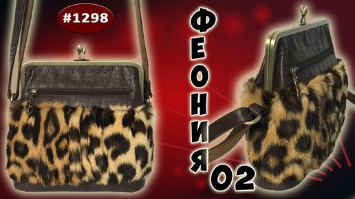 ПИК СЕЗОНА - Меховые сумки. Феония 02. Широкий фермуар 20 см. Комбинирование кожи и меха под леопард