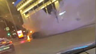 Горящий автомобиль затруднил движение в центре Москвы — видео