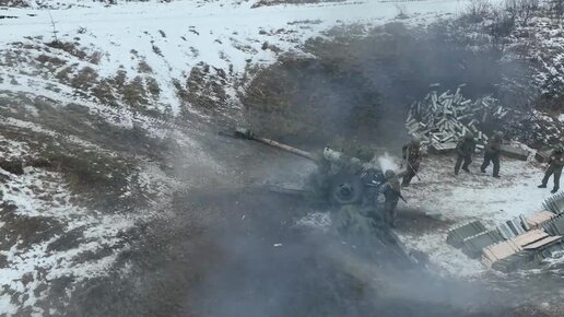 Кадры боевой работы расчетов буксируемых гаубиц Д-30
