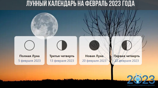 Лунный календарь на февраль 2023. Убывающая луна. Фаза луны сегодня. Лунный знак.