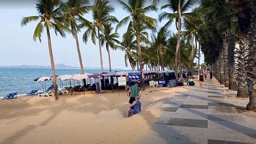 Пляж Джомтьен ранним утром в воскресенье. Прекрасное утро, прекрасные виды, прекрасная Паттайя и рыбацкая стоянка