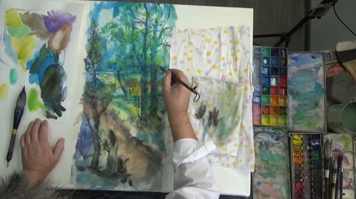Мастерская "Умная Акварель" Сергея Галеты. 11.02.23. Вертикальный этюд, пейзаж по представлению «Холодное утро». Ч. 1.