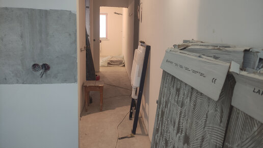 Окончание финишной шпаклёвки, начало укладки плитки. Ремонт часть 8