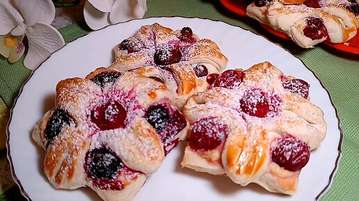 📌 Слойки с творогом и ягодами - Быстрый десерт к чаю из готового слоеного теста