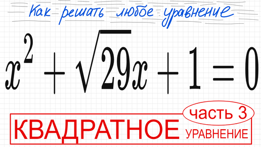 №6 Квадратное уравнение с корнем x^2+√29х+1=0 Что делать с квадратным корнем в уравнении Как решить уравнение 8кл 9кл ОГЭ 10кл 11кл ЕГЭ