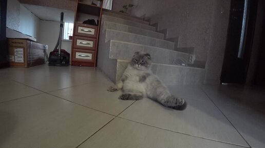Котик Кевин пришел с улицы. Наследил, но сидит такой важный