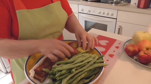 Cтручковая фасоль с копченым мясом и грушей Домашняя еда Кухня Рецепты
