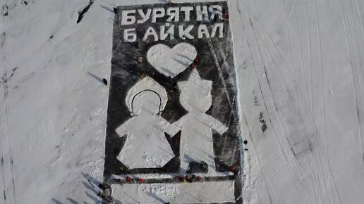 Сто человек нарисовали на льду Байкала «открытку» к бурятскому Новому году
