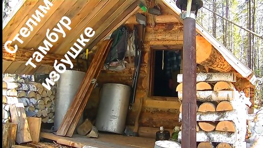 "Как построить избушку" Стелим тамбур избушке. Навес для дров от дождя и снега