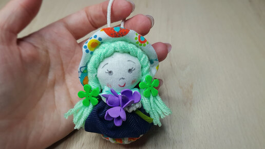 Очаровательная миниатюрная куколка из 2 крышек от пластиковых бутылок и кусочков ткани своими руками