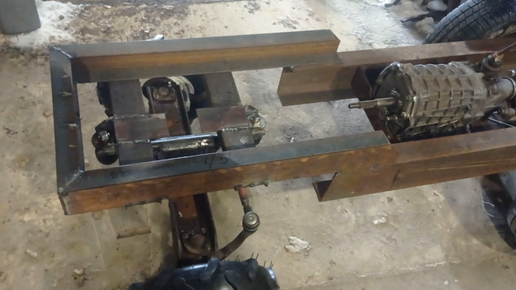 Рама на минитрактор 70 колея.Узел качания из рулевой тяги МТЗ на раме.Крепеж коробки ВАЗ классика в раму минитрактора.