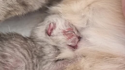 Мурлыканье мамы кошки, когда ее новорожденный котенок кушает 😇 Так мило!