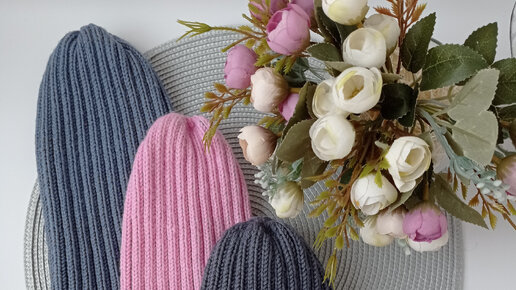 Шапка резинка 2x2 в полоску .Ровный переход от одного цвета к другому.